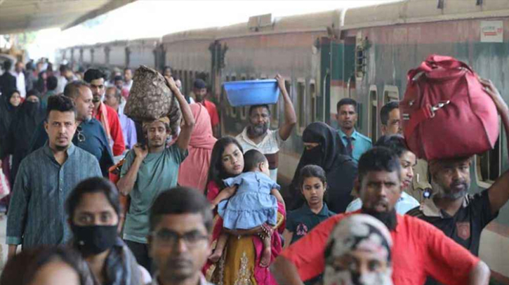 এবারের ঈদে ২৪ ও ২৫ মার্চ অফিস খোলা থাকলেও ২৬ মার্চ স্বাধীনতা দিবস এবং তার পরের দুই দিন সাপ্তাহিক ছুটি থাকায় অনেকেই বাড়তি ছুটি নিয়ে গ্রামের বাড়িতে গিয়েছিলেন। ছুটির সেই সময়সীমা শেষ হওয়ায় শেষ মুহূর্তে স্টেশনে যাত্রীদের চাপ চরমে পৌঁছায়। অনেক ট্রেনের ভেতর পুরোপুরি ভর্তি থাকার পাশাপাশি ঝুঁকি নিয়ে ছাদে চড়েও অনেককে ঢাকায় ফিরতে দেখা গেছে।