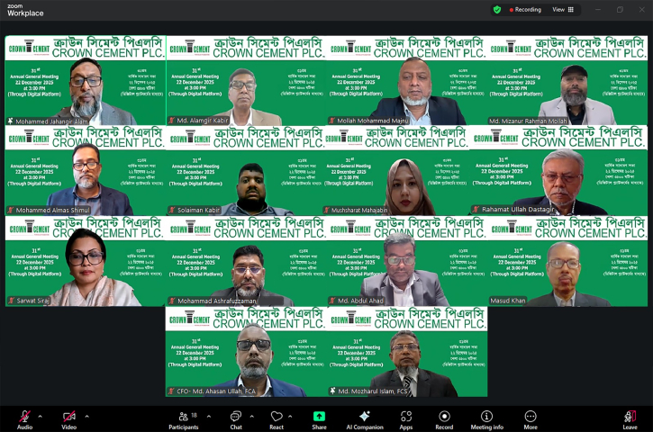 পুঁজিবাজারে তালিকাভুক্ত ক্রাউন সিমেন্ট পিএলসির ৩১তম বার্ষিক সাধারণ সভা অনুষ্ঠিত হয়েছে। ডিজিটাল প্যাটফর্ম এর মাধ্যমে অনুষ্ঠিত এ সভায় কোম্পানিটির শেয়ারহোল্ডারগণ কোম্পানির পরিচালনা পর্ষদ ঘোষিত ২১ শতাংশ নগদ লভ্যাংশ অনুমোদন করেছেন।