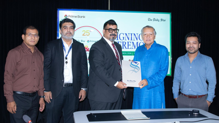 Also present at the ceremony were Tajdin Ahmed, Chief Business Officer of The Daily Star, and Mizanur Rahman, Chief Financial Officer and Syed Rayhan Tarique, Head of Brand and Communications of Prime Bank PLC, along with senior officials from both organizations.