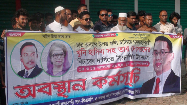 ছাত্র-জনতার উপর গুলি চালিয়ে গণহত্যাকারী শেখ হাসিনা এবং তার দোসরদের বিচারের দাবিতে গোপালগঞ্জে অবস্থান কর্মসূচী পালন করেছে জেলা বিএনপি।