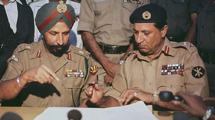 ১৯৭১ সালের ১৬ ডিসেম্বর আত্মসমর্পণের দলিলে সই করেন পাকিস্তানি বাহিনীর পূর্বাঞ্চলীয় কমান্ডের অধিনায়ক লেফটেন্যান্ট জেনারেল এ এ কে নিয়াজি। তাঁর পাশে উপস্থিত ছিলেন মিত্রবাহিনীর পক্ষে লেফটেন্যান্ট জেনারেল জগজিৎ সিং অরোরা।