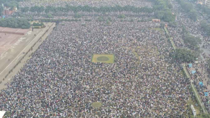এই জানাজায় ‘জনসমুদ্র’ শব্দটিও যেন অপ্রতুল হয়ে পড়ে। দৃষ্টিসীমা যতদূর বিস্তৃত ছিল, সেদিকেই শুধু মানুষের ঢল আর মানুষের ঢল। চারপাশে ভেসে আসে লাখো কণ্ঠের কান্নাজড়িত দোয়া, যা পুরো এলাকাকে করে তোলে শোক ও আবেগে ভারাক্রান্ত।