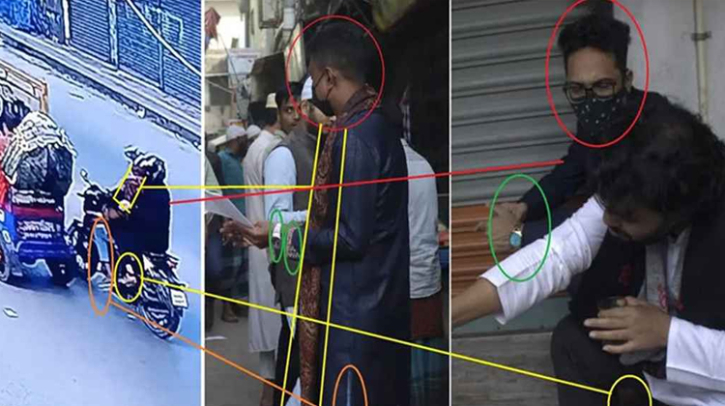 অন্যজনের পরণে ছিল কালো ব্লেজার, কালো মাস্ক, চোখে চশমা এবং পায়ে চামড়ার রঙের জুতা। জনসংযোগে অংশ নেওয়া ওই দুই ব্যক্তির পোশাকের সঙ্গে এসব পোশাকের সাদৃশ্য তদন্তে গুরুত্ব পাচ্ছে।